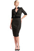 Boss lady business professional in a little black dress with a twist!  Stay sharp and standout in the boardroom, in the Nicola Sheath Dress. Accented with velvet bands and a velvet belt to give it a luxurious touch. A wear to work dress that'll be sure to get others admiring you. Style it with black heels or colored pumps, either way your sure to be on point!