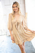 Beige Flow V Neck Knotted Babydoll Woven Dress