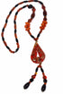 Colored glass beads in this gypsy style shimmer necklace, nice to wear along with dark rich colored sweaters and blouses. The pendants come in various styles with a generous amount of golden shimmer and other colorful swirls right down to the split beaded closing, with 2 lustrous black drop beads.